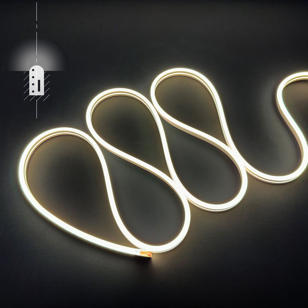 Furtunul Luminos LED Neon Flex poate fi taiat, curbat si este usor de instalat pe suprafete plane sau curbe, pe orice tip de material: lemn, piatra, ceramica, otel, sticla, plastic etc. Furtunul luminos, datorita sectiunii reduse (8x16mm), se poate monta in profilul SHADOW GAP LUXON de 200 cm disponibil pe culorile alb si negru.